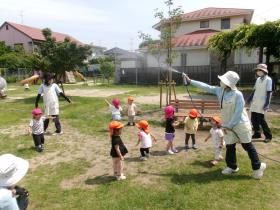 令和7年度より外部専門講師による体育教室を始めました。 歩き始めた子どもたちから参加できます。 発育発達に応じ様々な用具を使用し、子ども達にとって安全で楽しいプログラムとなっています。 楽しさや、喜びを味わえる内容が提供されてます。(体操服は園で準備しています) |