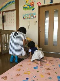 家庭的な保育環境のもと0歳児から3歳児未満児5名までを2名の保育士が保育を行います。 3歳からは連携園である湖東学園の幼保連携型認定こども園への入園ができます。 |