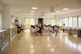 宗教的な雰囲気の中で ・命の尊さを学び自然との恵みに感謝する心を育む ・人の話をよく聞く子を育てる ・なかよくする子どもを育てる |