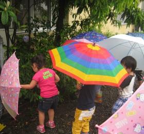 子どもたちが自ら満足するまで遊びこめるよう、自由な雰囲気を大切にしています。 私たち保育者はそれを温かく見守り、援助していきたいと思います。 |