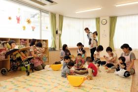 熊本機能病院に併設し、安心安全に配慮した保育を行っています。 木のぬくもりのある園内で、子供たちは楽しく遊び、様々なことを感じ取っています。 |