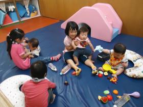 互いの違いを認め、思いやる心、尊敬の心を育む為の異年齢保育、子どもが主体となれる活動の方法として設定したコ-ナ-保育を実践し、自ら遊びの選択をする中で約束を守る大切さを覚え自立を支える保育を致します。 |