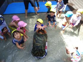 英語レッスン・体操教室は外部講師による指導により、小さいうちに興味を持ってもらえるよう、楽しく、質の高い教育を行っております。施設内には広い園庭・プールも完備しています。 |